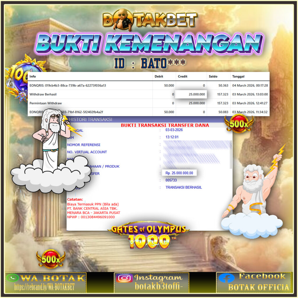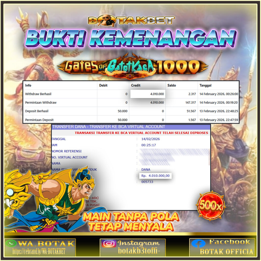 Withdraw Telah di Proses dan Saldo Sudah Mendarat Mulus di Rekening Anda !!! WD Berapapun di BOTAKBET di Bayar LUNAS !!!